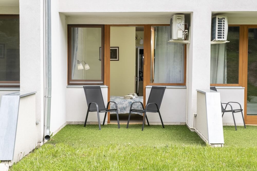 A szobák 2 felnőtt számára kényelmesek, és a berendezéshez tartozó emeletes ágyon 2 gyermek aludhat saját kis kuckójában. (A gyerek emeleteságy mérete: 70x150 cm.)