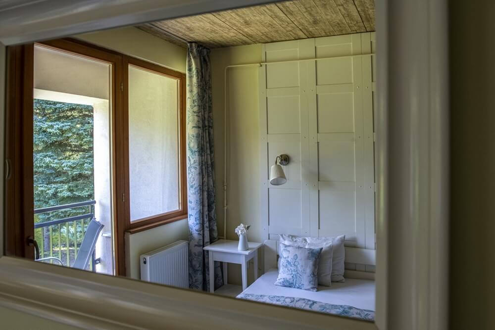 Az ágy támlájában beépített olvasólámpák teszik még hangulatosabbá az estéket. Földszinti szobák kertkapcsolattal, erdei kilátással rendelkeznek, a zuhanyzó mérete 70x70 cm, míg az emeleti szobák erkéllyel kapcsolódnak a természethez. A szobák pótágyazhatók, maximum 3 fő számára foglalhatók. Élvezzék a pihenést az ország egyik letisztább levegőjű településén!