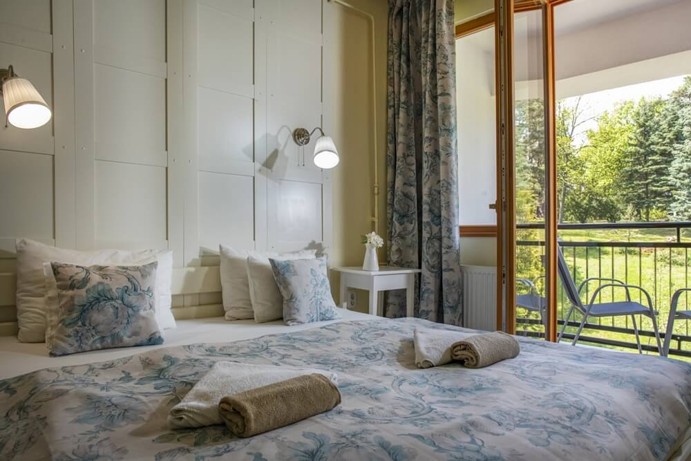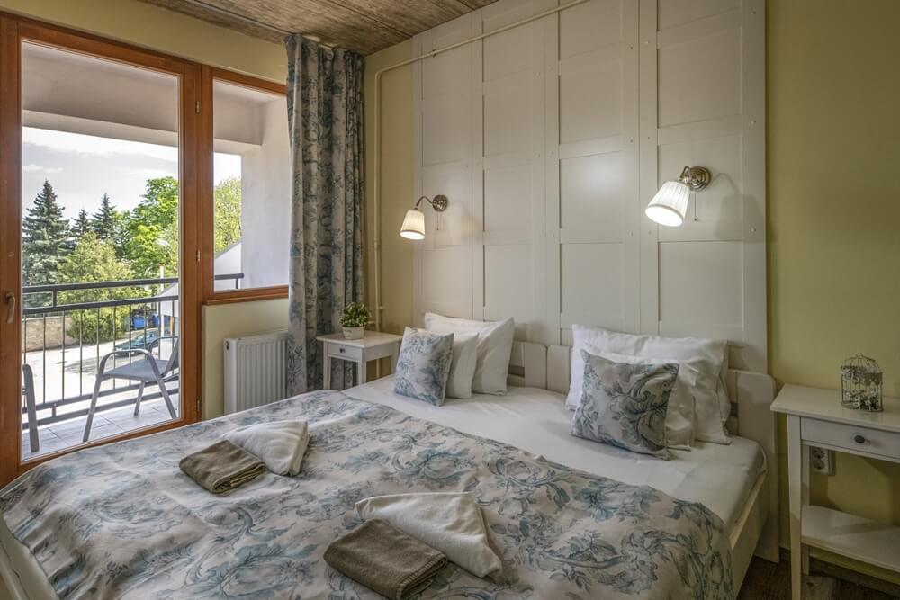 Vintage stílusban kialakított Superior szobáinkat elsősorban 2 fő részére ajánljuk. A rengeteg párnával és egyedi textíliákkal kényelmessé tett franciaágy mellett hófehér, kecses vonalvezetésű éjjeliszekrényeken elhelyezheti esti olvasnivalóját, személyes holmijait, hogy kéznél legyenek.