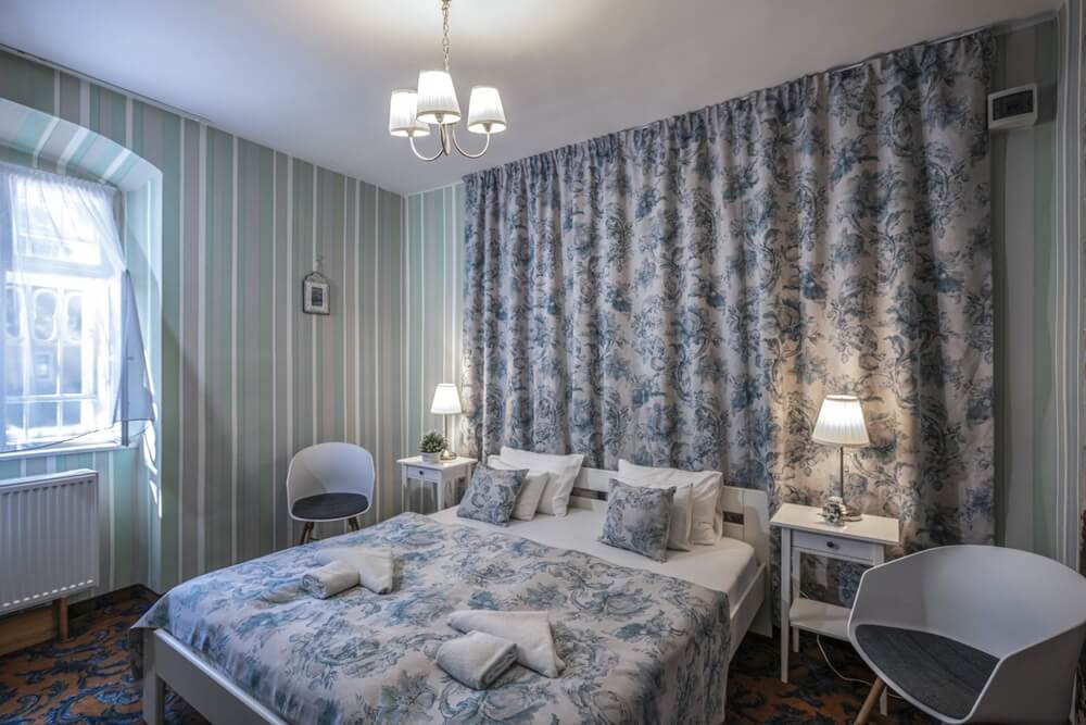 • Sűrű szövésű anyagból készült függönyökkel magasfokú elsötétítési lehetőség és a közlekedési utaktól való elegendő távolság a mély alvásért